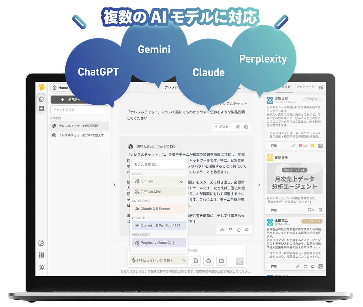 AIに学習されないセキュリティ体制でセキュアに利用できる対話型生成AIチャットツールです。